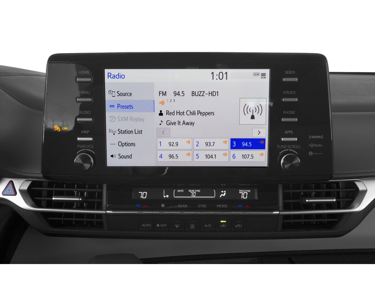 - Radio w/Seek-Scan, Clock, Speed Compensated Volume Control, Aux Audio Input Jack, Steering Wheel Controls and Radio Data System